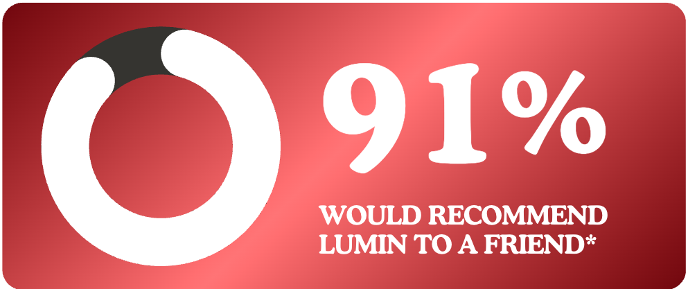 Here at LUMIN, we make sure our customers love their product or we will refund 100% of their investment. We're so confident you'll love LUMIN that we'll bear all the risk.