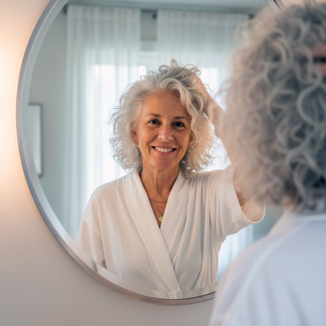 After menopause my hair was a disaster—thinning, shedding, the works. I'd given up. My daughter found LUMIN and convinced me to try. Month 4 now. My ponytail is thicker. I stopped avoiding mirrors. If you've been struggling, just try it.
