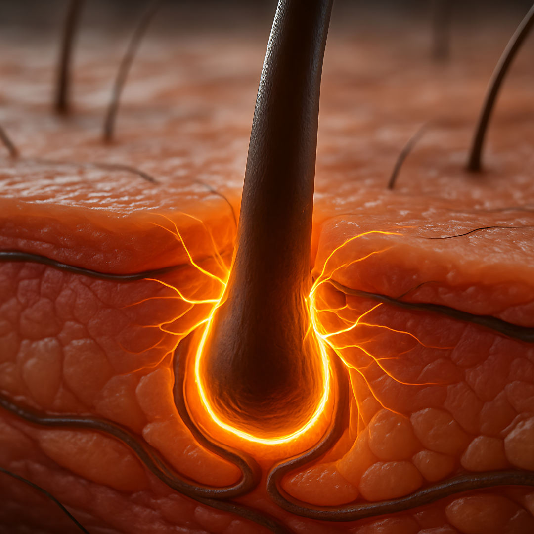 • 30 micrograms vitamin D — enough to overcome severe deficiency and wake dormant follicles