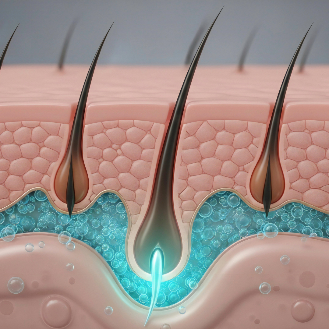 Regular biotin can't penetrate that barrier. She showed me the studies: less than 2% absorption through damaged scalp tissue.