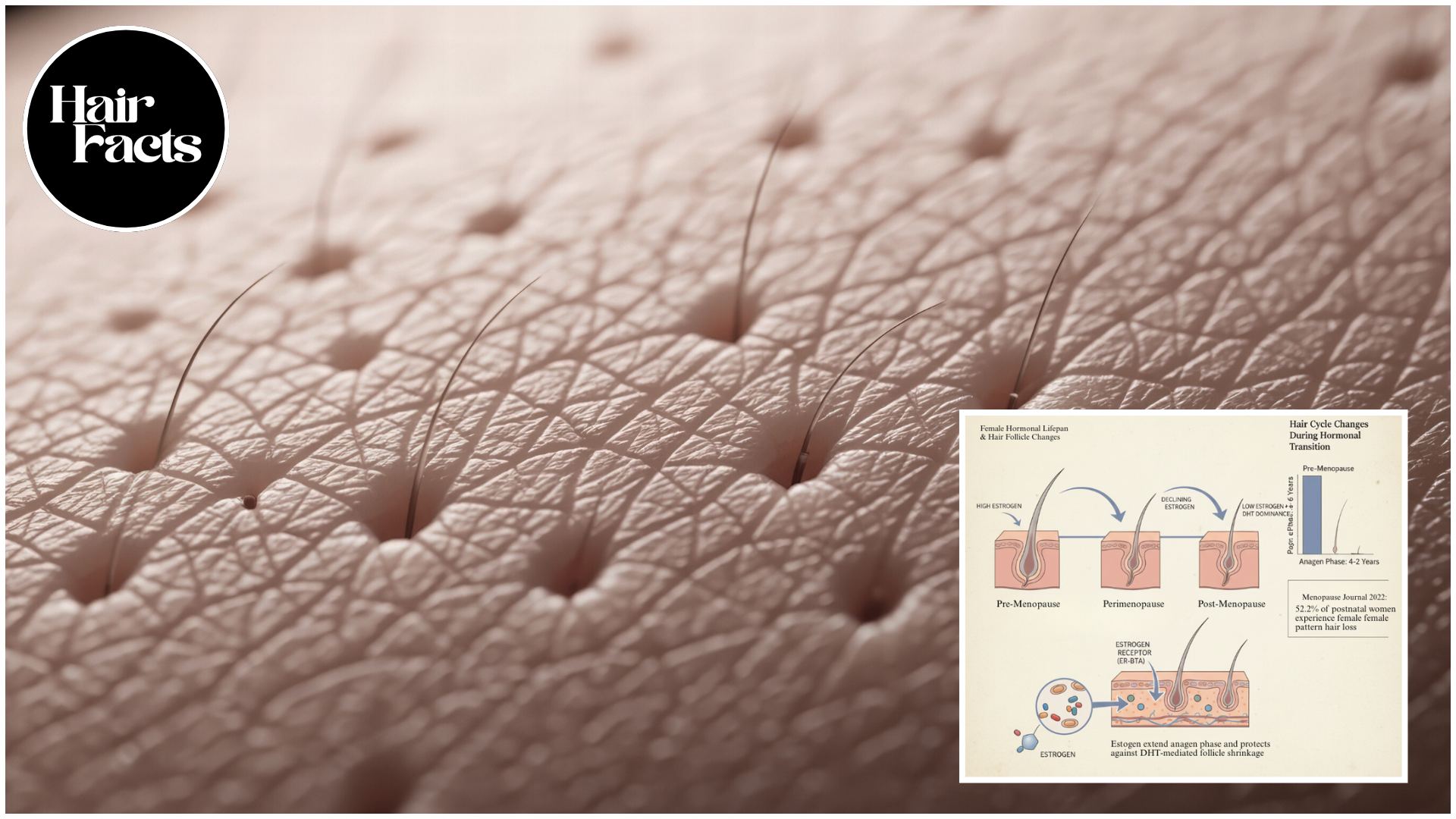 A 2022 study in the journal Menopause found that 52.2% of postmenopausal women develop female pattern hair loss. That's more than half. And the study noted that 60% of affected women had low self-esteem because of their hair loss.