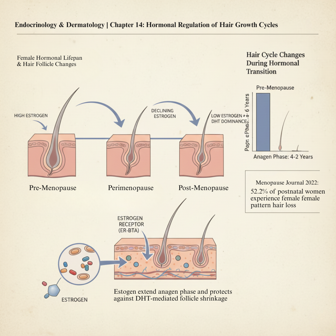"Your follicles aren't dead," Dr. Williams told her. "They're starving. They're missing the estrogen that used to nourish them. And they're under attack from DHT that estrogen used to block."