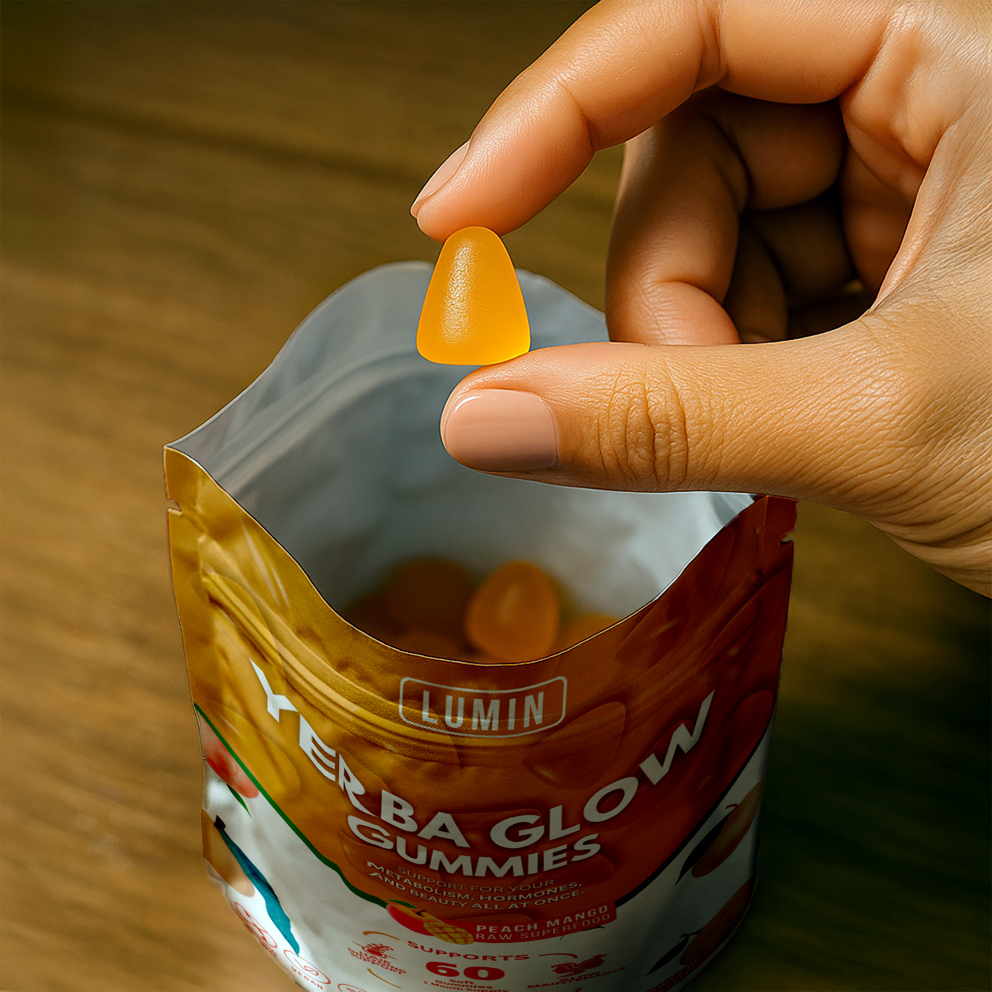 I picked up the pouch - Yerba Glow Gummies. They looked like regular gummy vitamins, nothing special. "Sarah, I've tried everything. My cabinet is a graveyard of miracle pills."