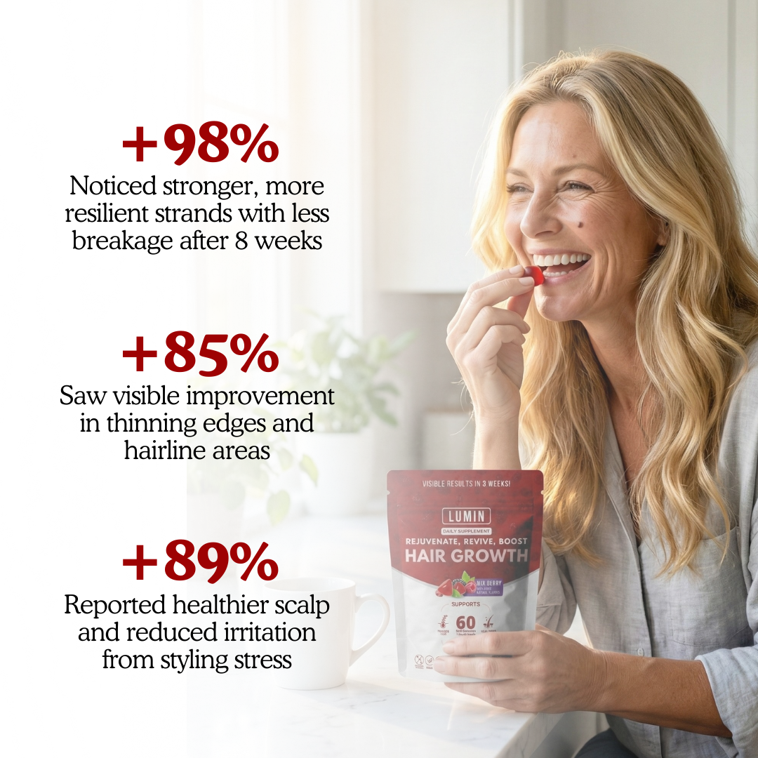 Based on a 60-subject self-reported survey of daily Lumin Hair Growth Gummy users over 8 weeks.
